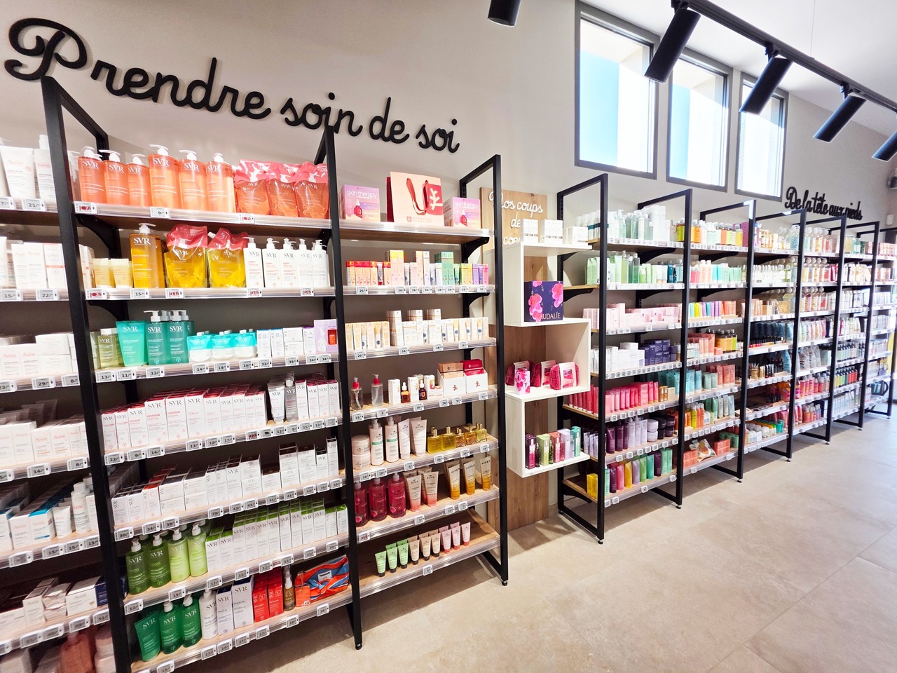Le parcours client facilite les déplacements et l’orientation au sein de la pharmacie. Cette organisation améliore la visibilité des différents univers et le confort de visite.