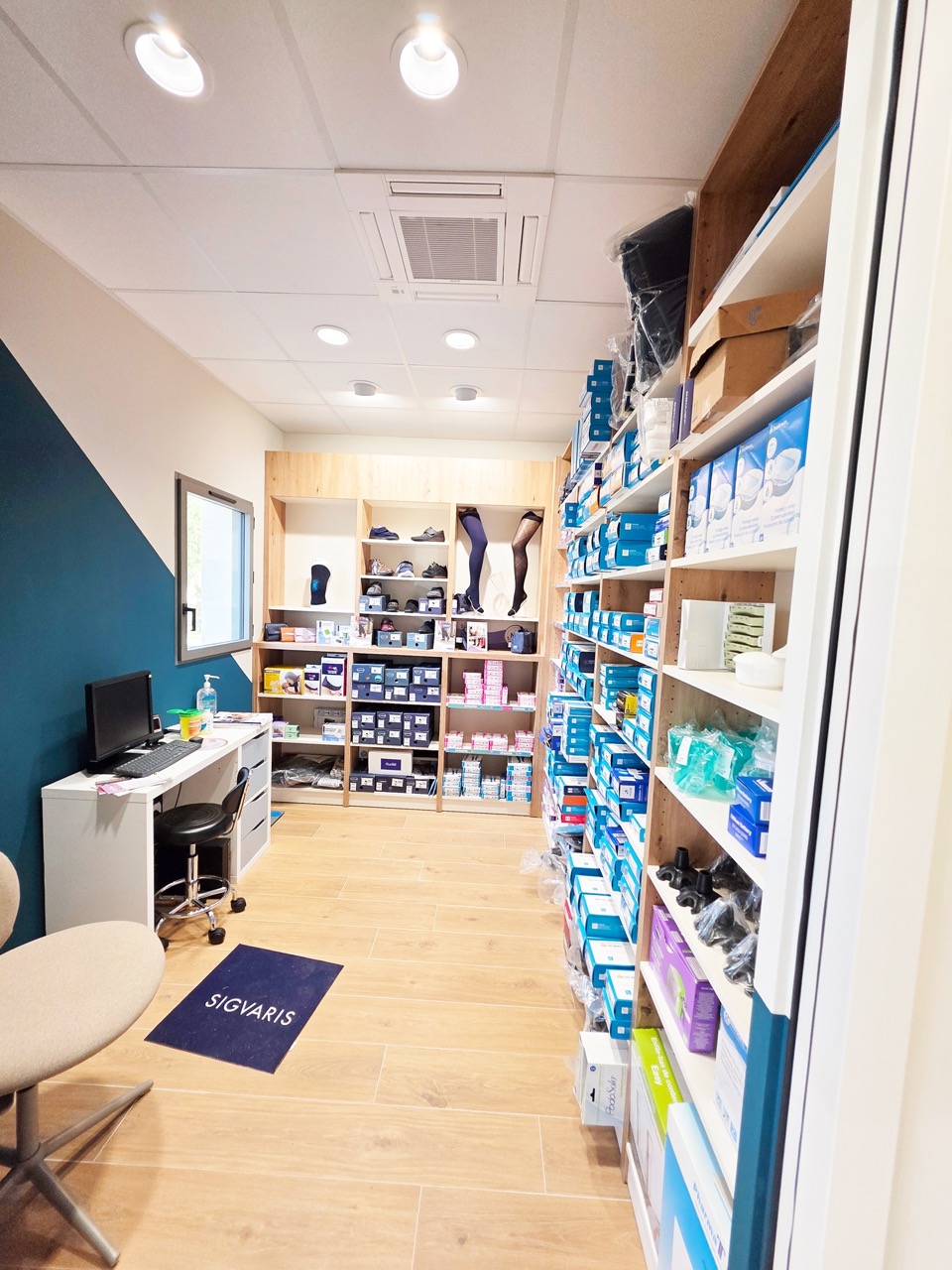 Nous avons intégré trois espaces confidentiels dédiés à la téléconsultation, à la vaccination et au dépistage, ainsi qu’à l’orthopédie-contention.